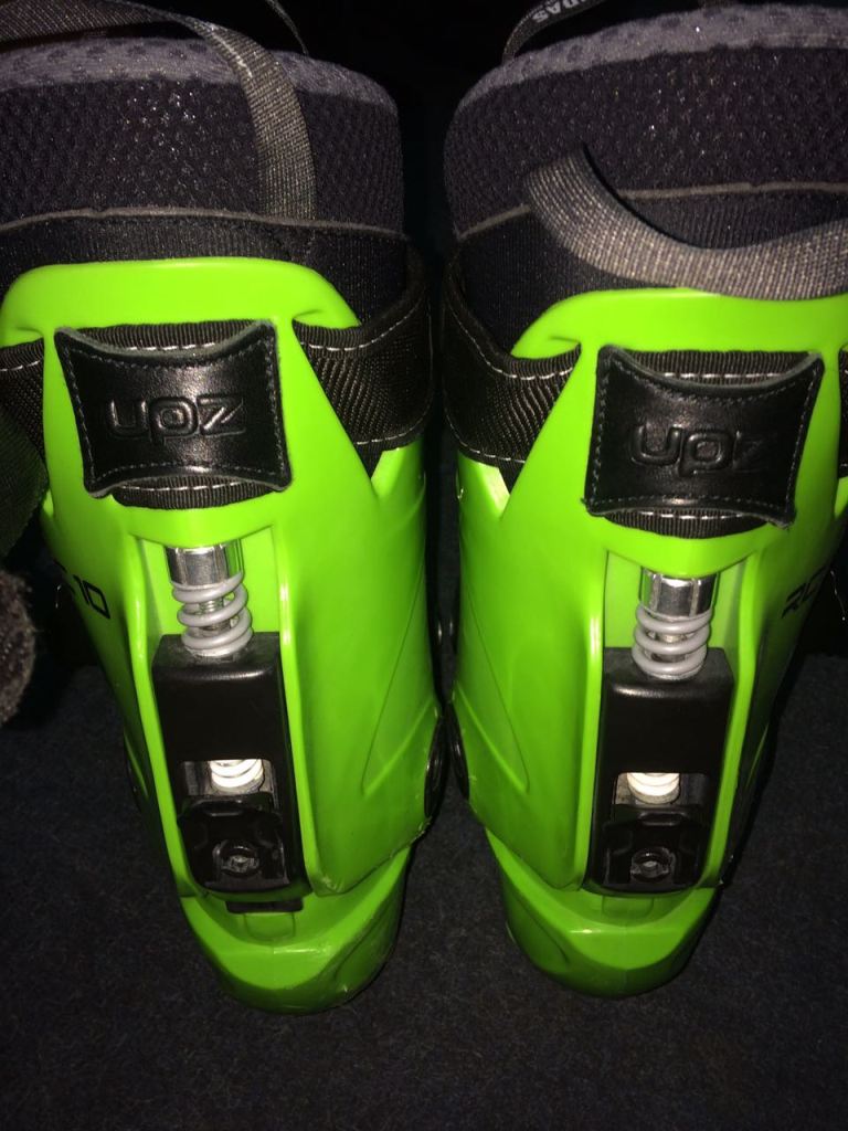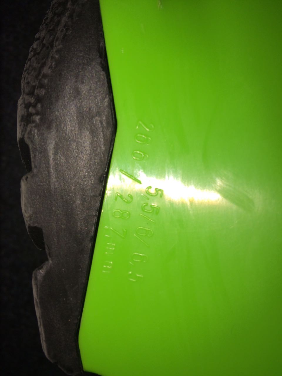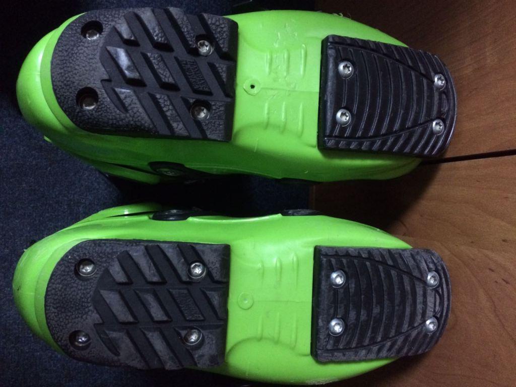 • Состояние хорошее. Чуть погнута шпилька первой клипсы левой ноги. Есть царапки на пластике, остались от лыжника на Ежовой. Адаптеры левой ноги чуть сильнее изношены. Производилась !!!вытяжка пластика!!! (у Василевского) в районе больших пальцев ног: правая сильно (больше нельзя), левая чуть-чуть (на фото видно). Не сильно шлифована ниша в левой пятке. Трещин нет. На языки добавлен пластилин для более равномерного распределения давления на стопу (могу убрать).