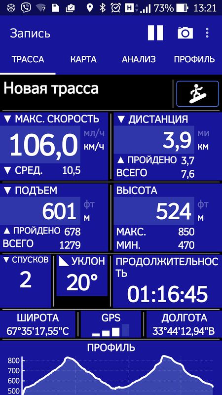 Несмотря на все ухищрения (активная работа палками на старте и максимально закрытая низкая стойка), выйти из 69 км/ч мне не удалось ни разу.