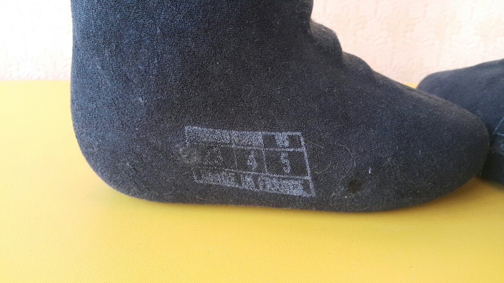 На одном валенке поплавлена красная материя при запекании, дефект - эстетический.