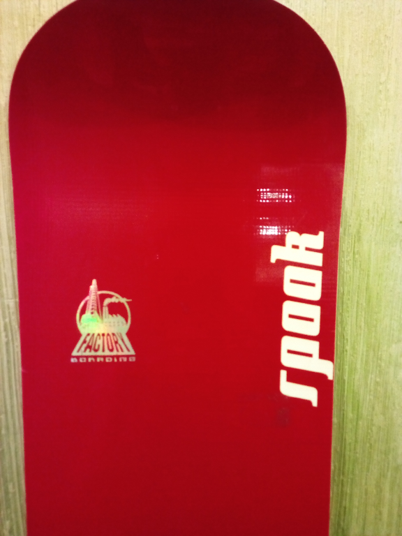 Неожиданно попала в руки новая доска Factory Boarding модели Spook. Размерности 170. Радиус на глаз, около 13 метров. Похоже что монорадиус. В магазине простояла с 2011-го года. Какого года рождения - неизвестно. Сайт, указанный на доске, слабовменяем и не информативен. Поиск по сети тоже ничего не дал.