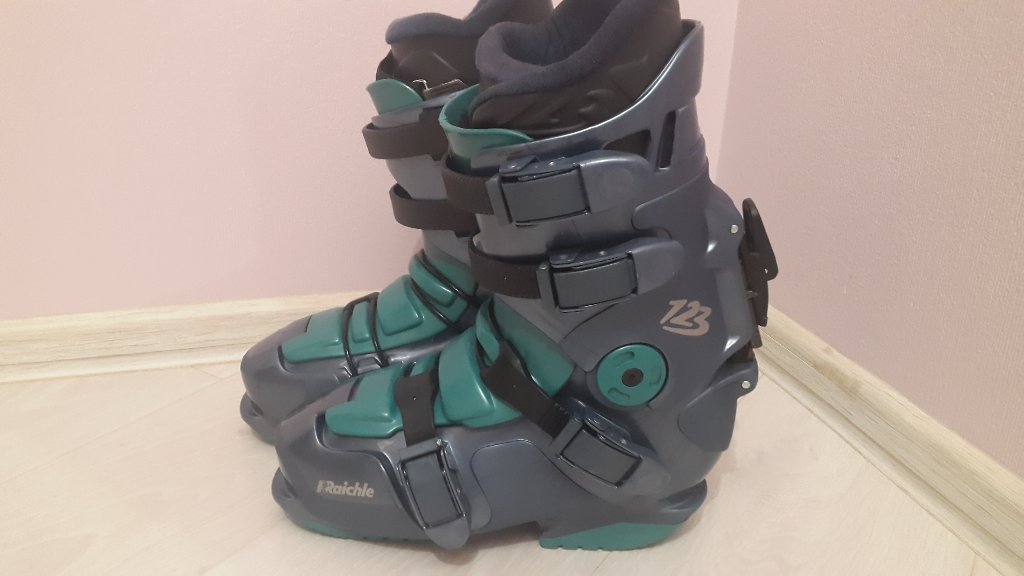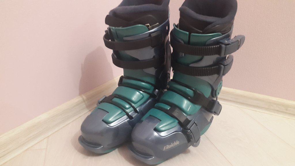 Новые сноубордические ботинки Raichlе 123, с двумя застежками голени. Внутренник 265мм. Скорлупа 285мм. 4500 тыр.