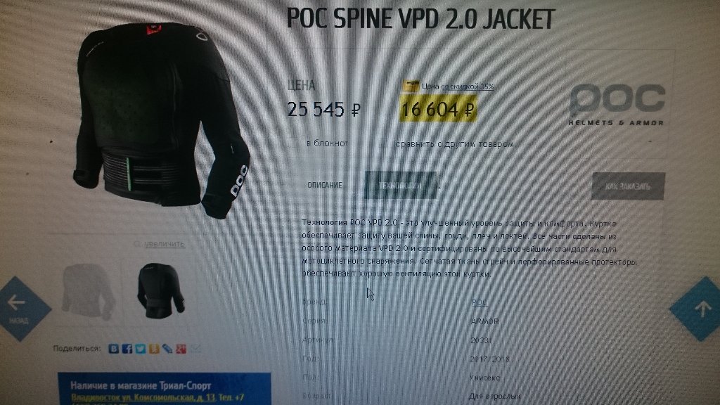 Продам защитную куртку "черепаху" POC Spine VPD 2.0 Jacket. Размер L/XL. Катал в ней около месяца. Все целое, каких-либо дефектов нет. Вся защита из твердеющего при ударе материала D3O. Все съемное, кроме плеч. Очень удобная и защищает везде где нужно - локти, плечи, спина, грудь. Отказался, когда начал пробовать плотные евро укладки. При плотном приходе на склон мешает защита плеч, а она не съемная. Других претензий к куртке нет. Ткань - мелкая сетка лайкра. Очень комфортная. Долго не хотел продавать, думал найду ей применение. Но вот второй сезон на исходе, а она так и весит в шкафу без дела. Заберите хорошую вещь.