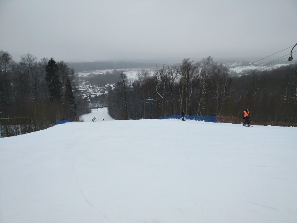 Сначала на лыжах, но показалось скучновато, потом на доске- вот тут прям хорошо- склон лайтовый, но подготовка отличная. народу не много и он не мешает. ребенку очень понравилось. как вариант для выгуливания ребенка в выходной- отличное место.