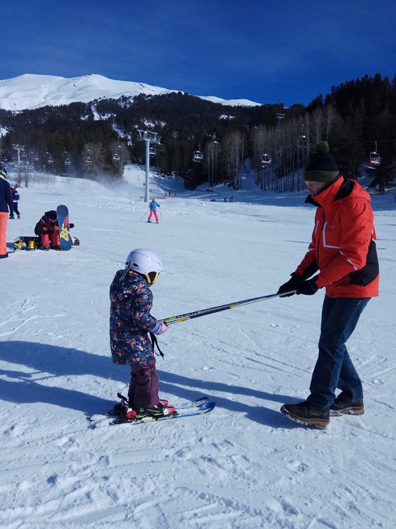 3. Для обучения ребенка тут практически ничего не приспособлено. Есть один бэби-лифт, но протяженность данной детской трассы смехотворна. Бугелей внизу, как я уже сказал, нет. В итоге мы карабкались вверх пешком, а стимула к обучению этот процесс не особо прибавляет.