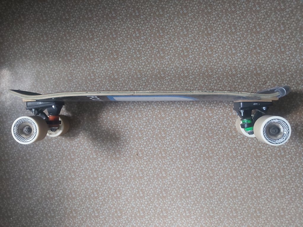 На доску поставил по одному клину Khiro спереди и сзади (по 7 градусов они вроде). Спереди ABEC-11 REFLEX 74a бочка и конус (tall .650), сзади RipTide Tall Barrel .75 APS бочка и RipTide Cone .60 APS конус. Немного сточил бушинги по высоте, чтобы гайку на кингпине закрутить.