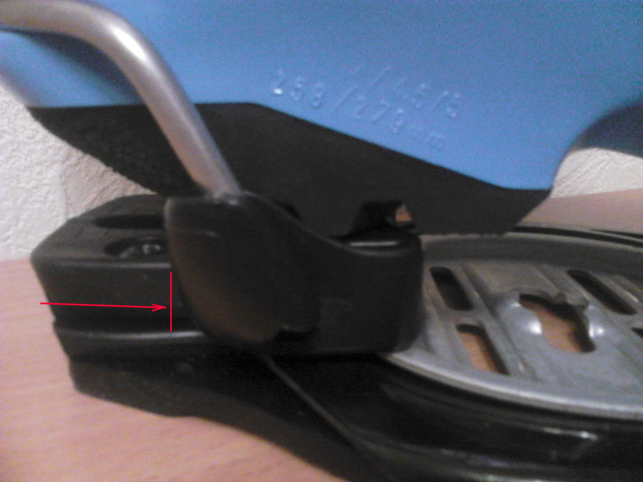 Нагрей (кипятком, феном, (без фанатизма :)) пластмассу защелки и немного выгни (отогни конец, который упирается в клипсу).00-00 писал(а): 4. Большой зазор между ботинком и фиксатором (лягушкой? ) передней дужки