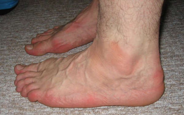 Правая нога. Наминает сверху, ну и хорошо так досталось мизинцу (покраснения хорошо демонстрируют проблемные места).