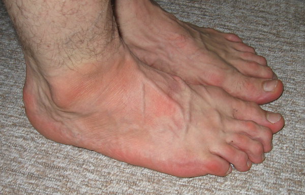 Правая нога. Наминает сверху, ну и хорошо так досталось мизинцу (покраснения хорошо демонстрируют проблемные места).