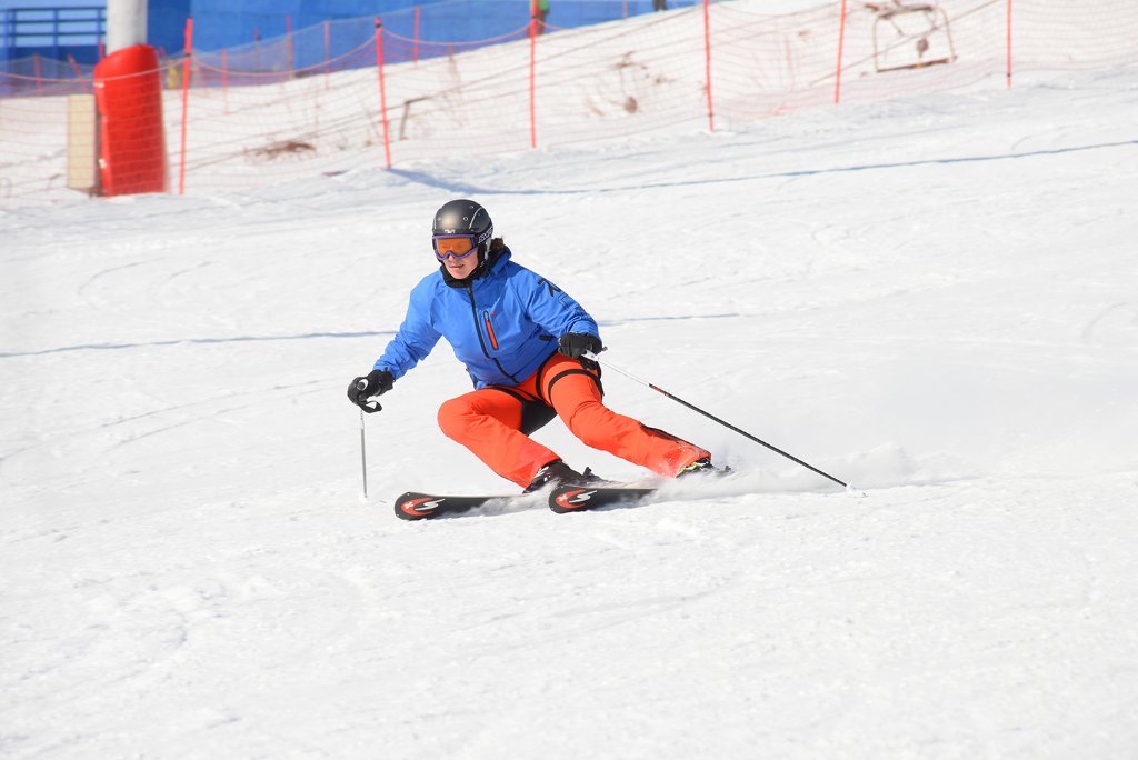 Вижу, что колено наружной уже почти на склоне лежит, дальше некуда.