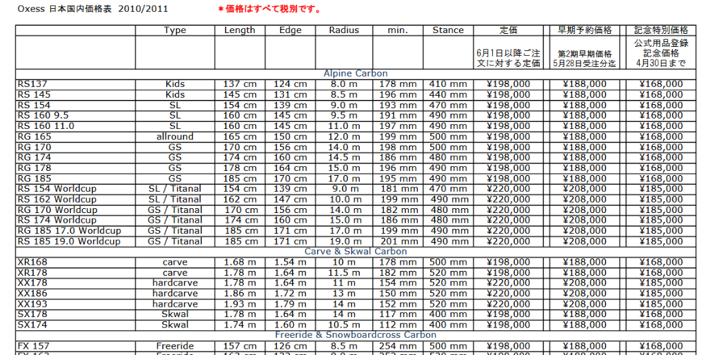 Я вот не поленился и нашел номенклатуру рейсовых досок Oxess на сезон 2010/2011. Скриншот привожу. Оригинал находится здесь.