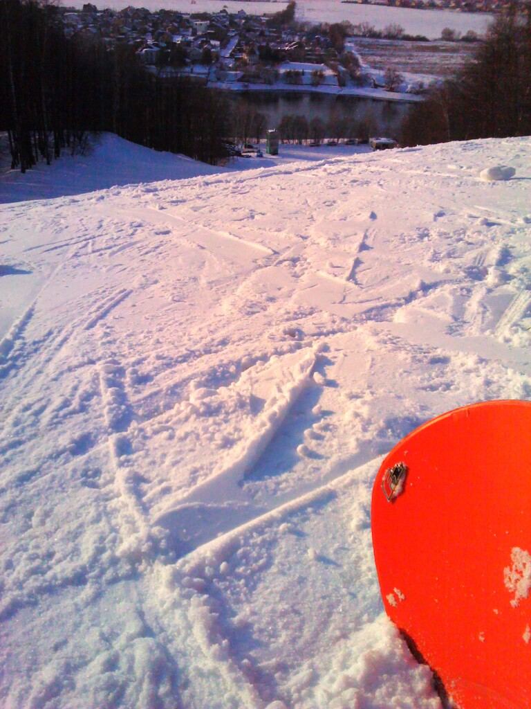 склон встретил нас солнцем вельветом и некоторой пустынностью (всего было штук пять катающихся), морозец...