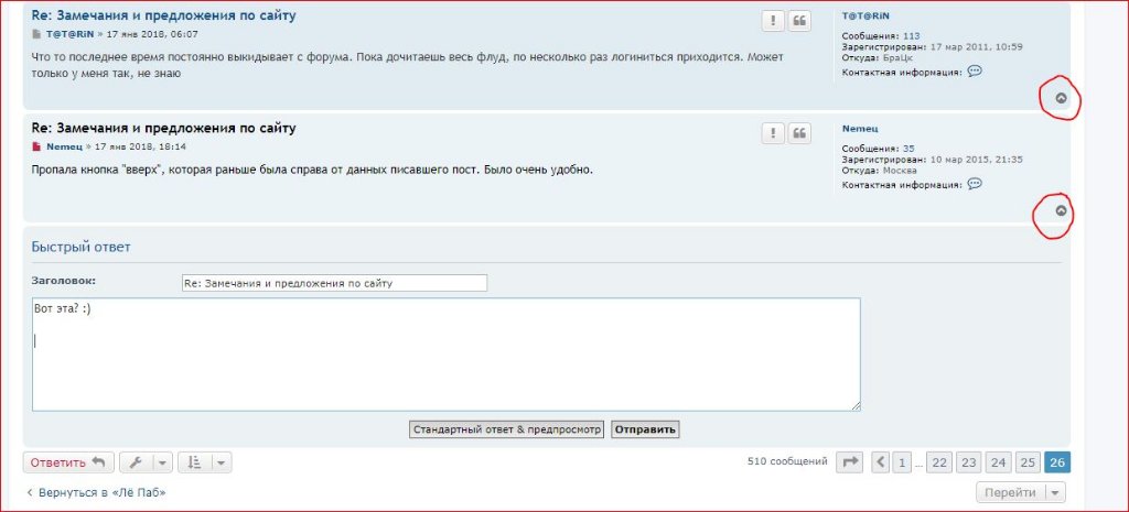 Пропала кнопка "вверх", которая раньше была справа от данных писавшего пост. Было очень удобно.