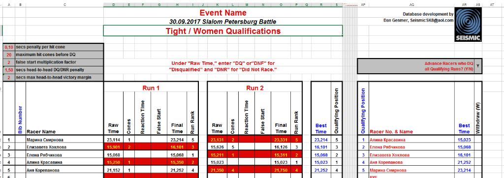 Хочу немного рассказать, как будут проходить финалы у мужчин. 4 сильнейших по результатам квалификации пойдут в финалы группы А, остальные 8 или, если наберется мужчин, 16 человек отправляются в финалы группы В. Но т.к. соревнования статуса Basic, то есть всего лишь одна мужская категория (Open), результаты будут заноситься одним списком, то есть тот , кто в финале группы А занял 1 место будет на 1 месте, а победитель финала группы В будет на 5 месте. Список 4 сильнейших на линейки и гибриде будет свой, исходя из результатов квалификации. Награждаться победители будут в 2 группах (группа А и В). Если в гибриде 1 место у Васи, а 2 у Саши, а в тайте наоборот, 1 место у Саши, а второе у Васи, то в общем зачете побеждает тот, кто выиграл гибрид.