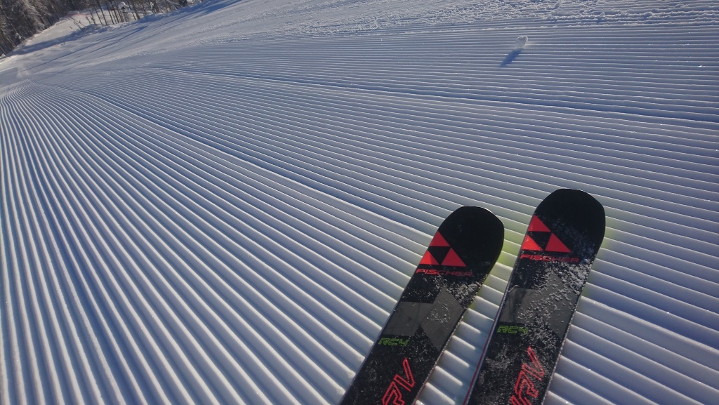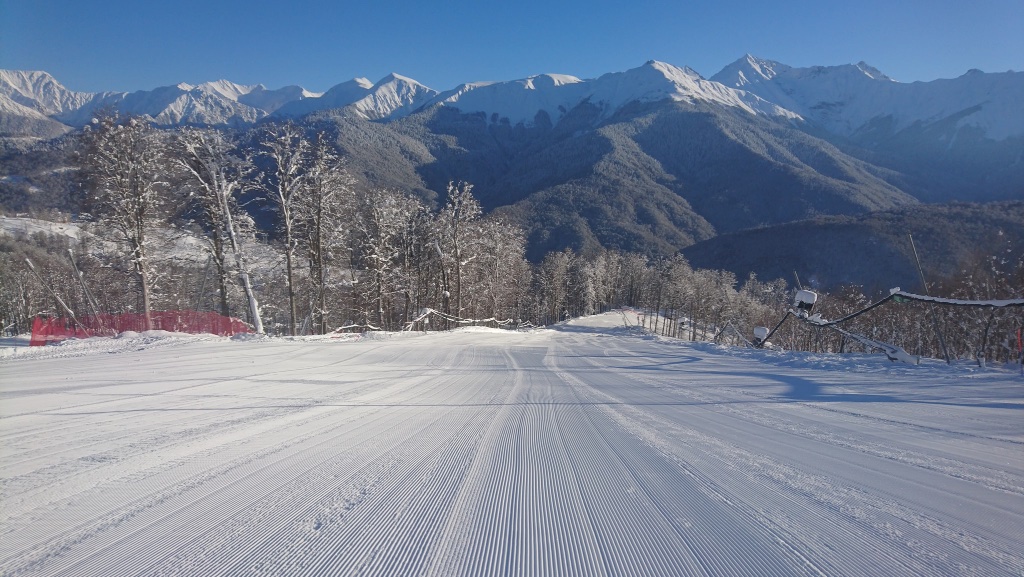 Почему это было в 8 утра, когда самые ранние пташки успели от силы 3 спуска сделать - бог весть. Могли ночью не подготовить, а может быть ранняя тренировка у спортсменов была. Мне обычно поутру там на вельвет везёт. Фото оттуда не мои, но я рядом стоял