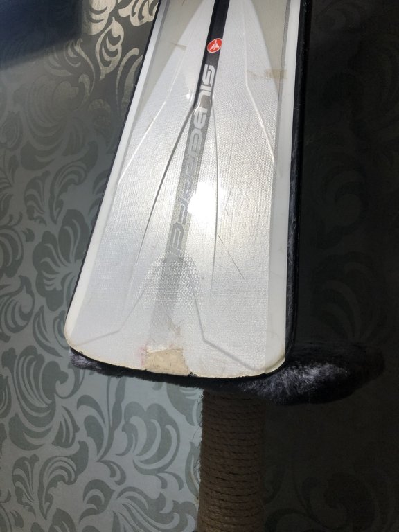 Есть небольшой скол лака на хвосте, замазанный предыдущим владельцем, каким-то композитным материалом. Два сезона- всё ок.