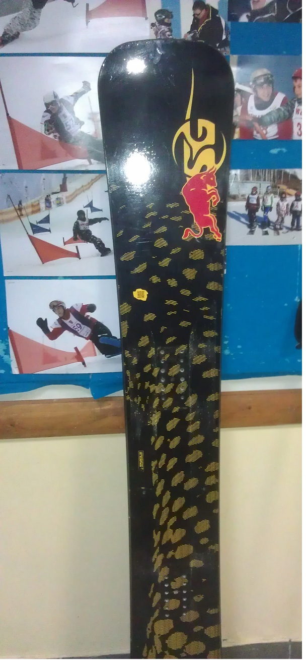 Как видно из заголовка:- слаломка легендарного Зиги Грабнера, ростовка 163, кантов больше половины, доска обслуживалась одним райдером, вовремя парафинилась, скользяк в нормальном состоянии,не пересыхался...,