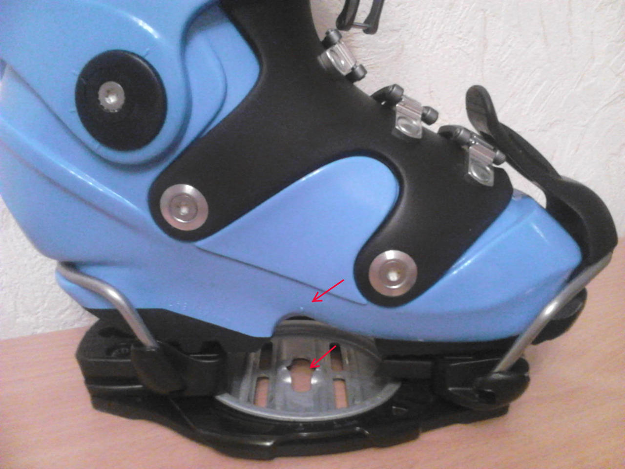 1. Центр ботинка (отметка на ботинке) выставил аккурат над центром диска фиксации крепа