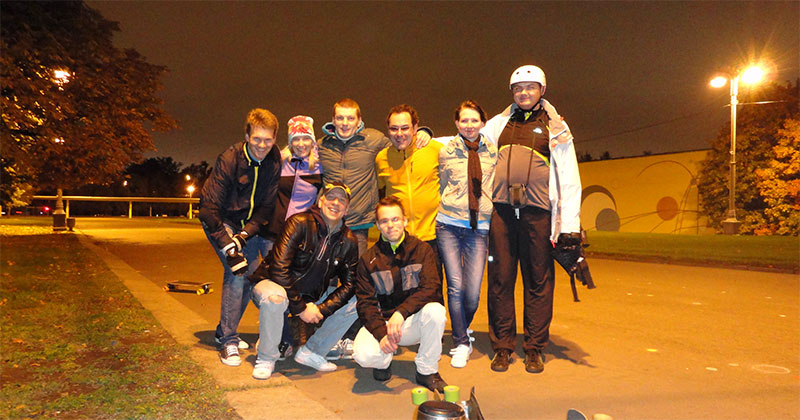 Последний пятый день, понедельник, выдался на удивление тёплым и солнечным. Мы приехали на ВДНХ днём. Катали линейку, тайт на плоскости, быстрый гибрид на горе. Настраивали доски, обсуждали нюансы техники, пили горячий ароматный чай с травами и мёдом. Под вечер провели финальное мероприятие - прощальный гранд-ужин, на котором обсудили будущее официального российского скейтбординга и перспективы проведения международных соревнований в столице.