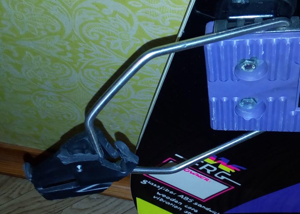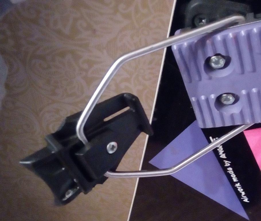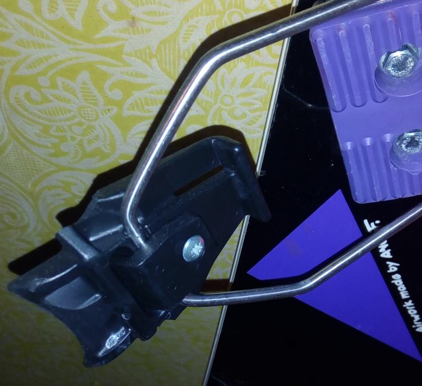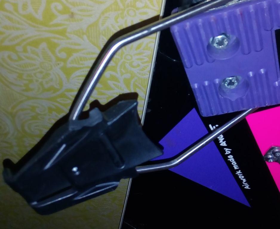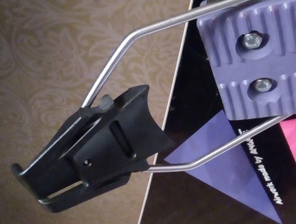 Пластиковый язычок и железная дуга здесь раздельные элементы. Крепления стояли так, что язычок захватывал пятку ботинка.
