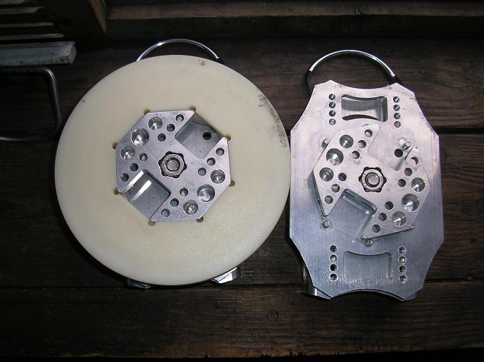 вспомнил про такие вот крепы, которые давно валяются без дела недостатки у них такие: невозможно при выбранных углах поставить крепы плоско - какой-то небольшой кантинг или наклон есть. два эти пластиковые диска весьма мощные и на морозе не гнутся