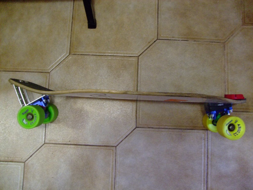Скейт собирался и настраивался для себя, почему есть запасные кингпины, но, с оказией, появился Калибер на ГОГ'ах.