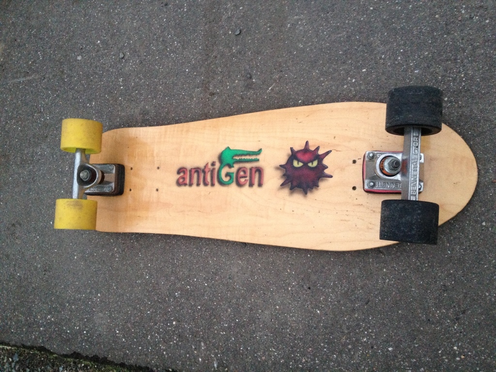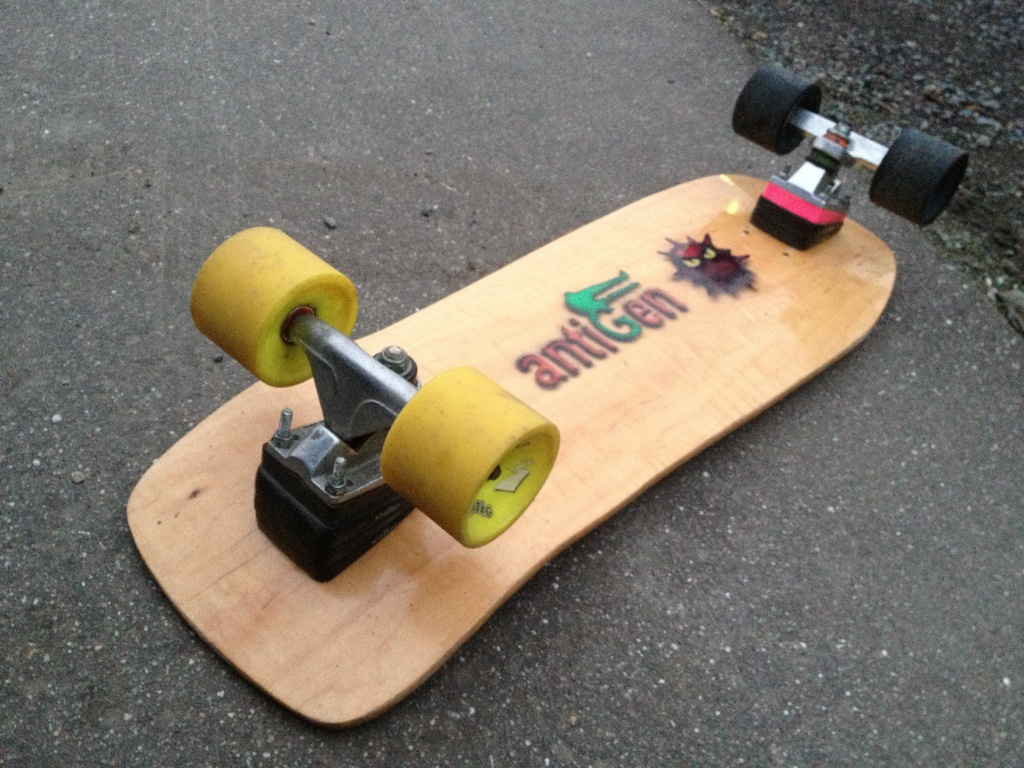 Продается раритет от Влада Попова. Один из самых первых antigen'ов. ANTIGEN SL ( дека- дерево,подвески перед Bennett, зад Tracker, бушинги не знаю, он ставил, колеса перед- неизвестно, зад zig/zag оба вилсета - 70мм) Собран очень аккуратно, состояние очень хорошее и полностью оригинальное!,как он собрал!