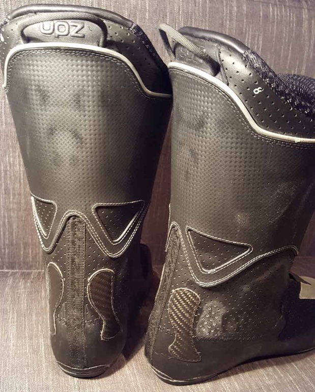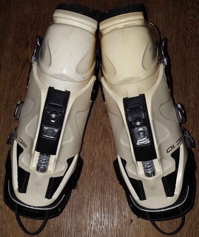 Из недочетов оторвался краешек ремешка вокруг голени, см фото), коцки на большой гайке регулятора жесткости пружины и на пружине, чуток сточен уголок 3 застежки на правом ботинке. Внутренники фло. Родные стельки новые тк катался со своими. Москва.