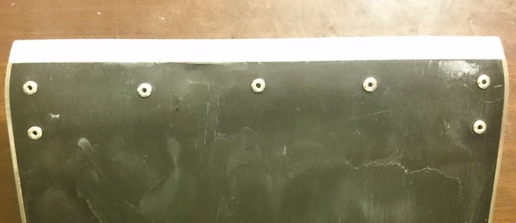 Хвост заклеен и скреплён вытяжными заклёпками. Заклёпаны последние 4 см хвоста - в нерабочей зоне канта, на карвинг не влияет.