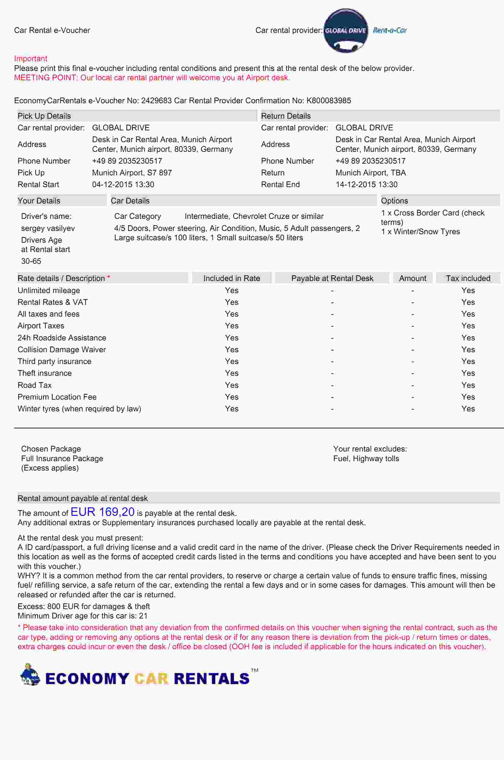только бы брали. Но все равно по опыту машина среднего класса обходится в НЕКРУТЫХ конторках (авис и т.п. я даже не смотрю) по 20-25 евро в день за гольф класс даже в феврале. Только надо знать ньюансы каждой шарашки (у некоторых трансграничная карта обходится в 100 евро или вообще запрещена)