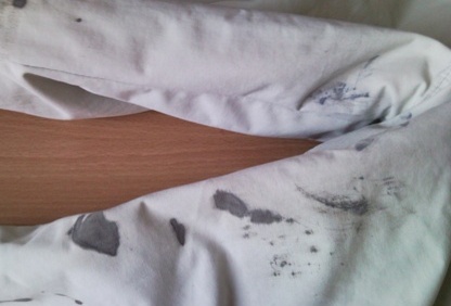 Я пытался удалить пятна с помощью различных методов: химическим, сливочной маслом, уксусом, салом, бензином итд. После применения всех известных мне способов и многократную стирку, пятна были удалены.
