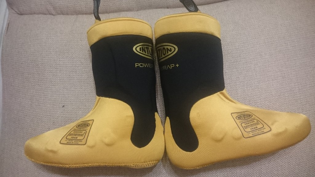 5. Лютые внутренники Intuition Power Wrap + Для настоящих мужиков. Можно встегивать прямо в крепы без мыльниц вообще. Ну а если серьёзно, жёсткие они мне. Купил в позапрошлом сезоне новыми, запек один раз.и один раз спустился. Так и лежат. Размер мо27. Наверное для более весомых карверов подойдут. Денег прошу 5500 за пару.