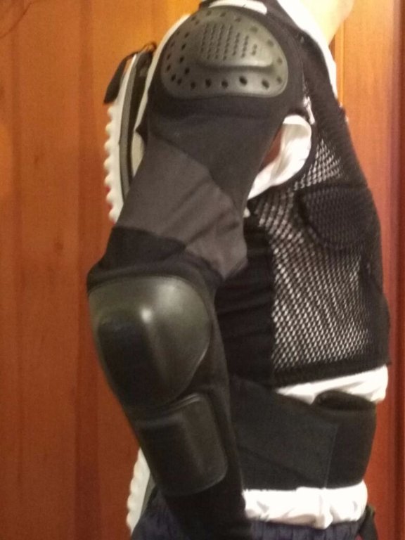 Катал такую куртку- защиту. ИМХО - сковывает. Сейчас, от куртки, только черепаха + волейбольные наколенники/налокотники.