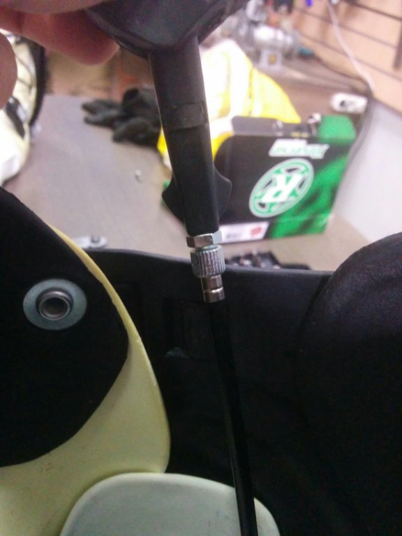 Починил оба троса при помощи новой рубашки троса тормоза, четырех пластиковых наконечников, пары ниппелей, регулировочных винтов с контргайки, кусачки пассатижи тиски.