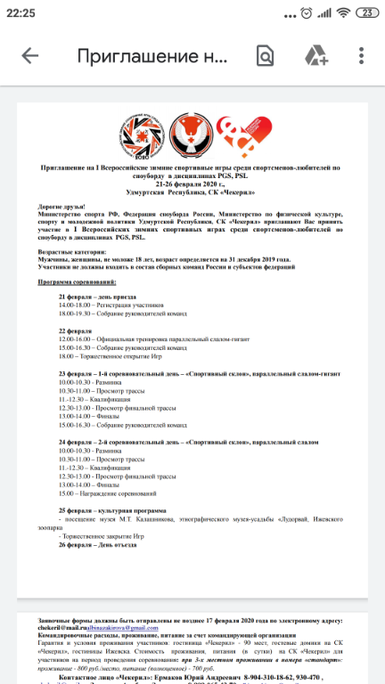 Приглашение на I Всероссийские зимние спортивные игры среди спортсменов-любителей по сноуборду в дисциплинах PGS, PSL