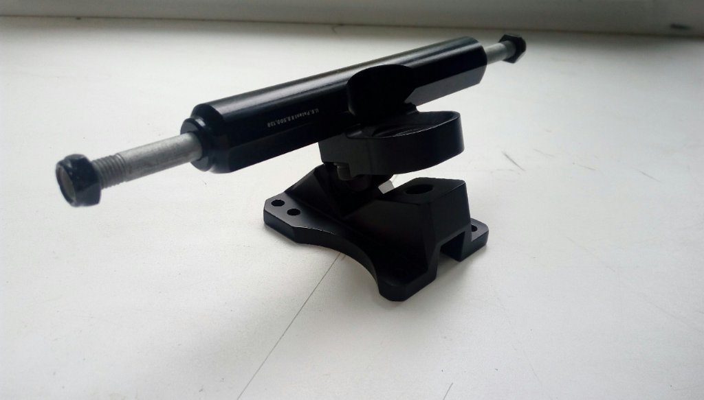 Стоковый кингпин коротковат, но он идет в комплекте. Также напечатаю к подвеске угловые подкладки по запросу, есть немного бушингов.