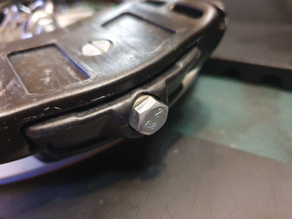 А катанный погнутый пистон выглядит как-то так - болт наклонен вправо. Из-за таких изгибающих нагрузок он и ломается от усталостных трещин.