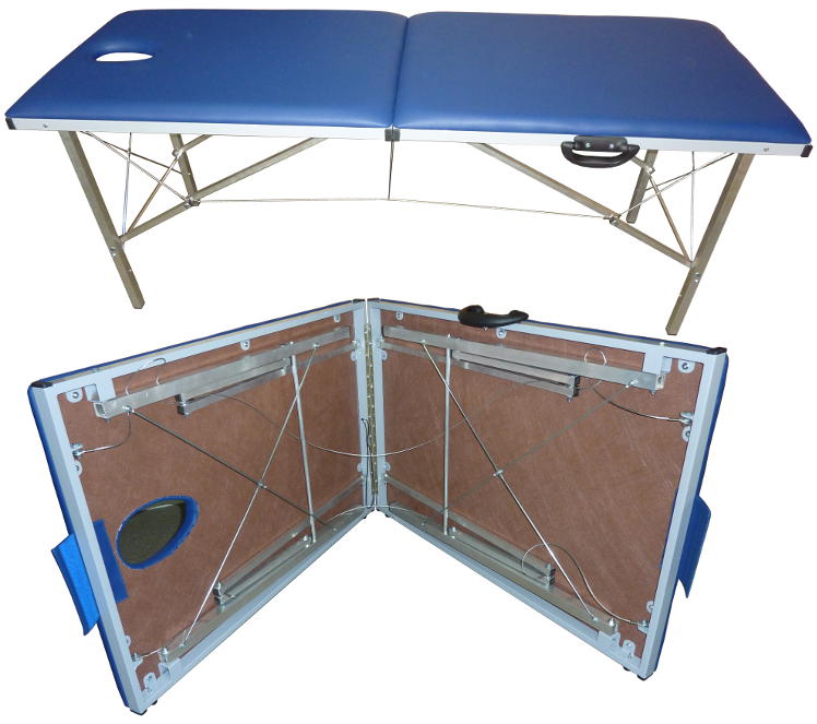 У меня есть идея использовать для нее 2 складных массажных стола, модифицированных определенным образом. Стандарты массстола: высота до 90см, ширина 70см, длина до 2м (нам надо 65-70 на 120-130см). Нагрузка 230-290кг. Складывается в кейс с ручкой, лезет в багажник. Из двух таких столов можно соорудить собственно стол и основание для съезда с него с сопряженными радиусными поверхностями R=120см (получится второй кейс с изогнутыми поверхностями). Стартовые ручки из дюралевых трубок - например от весел байдарочных(чтобы разборные были по длине и лезли в багажник) или из профиля дюралевого - возможно у меня в деревне в остатках от водного туризма найдутся.