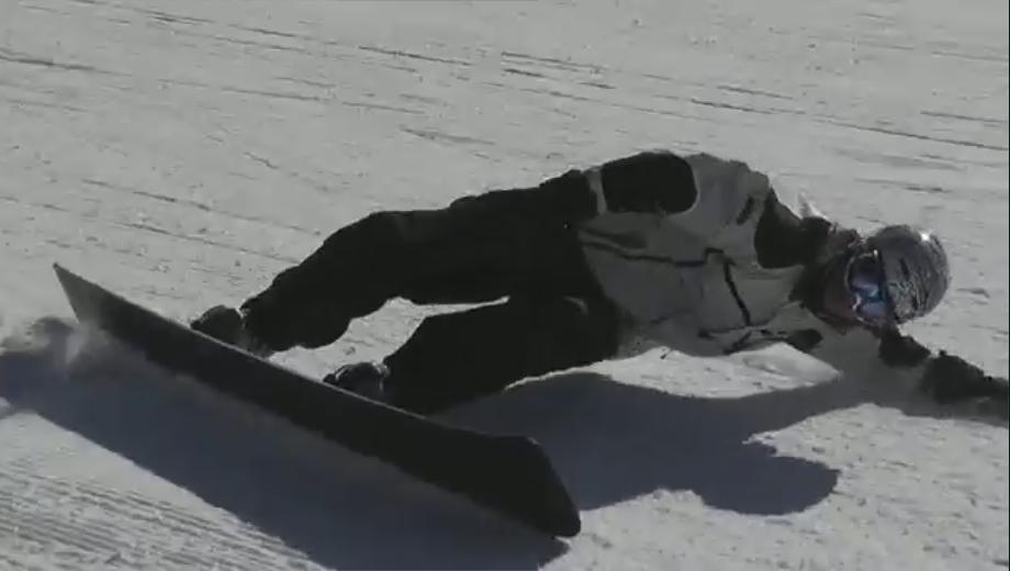 Всё бы хорошо, однако в кадре человек выполняет вертикальную работу с отрывом ног от точки контакта канта со склоном. Т.е. попросту говоря он сходит с дуги.