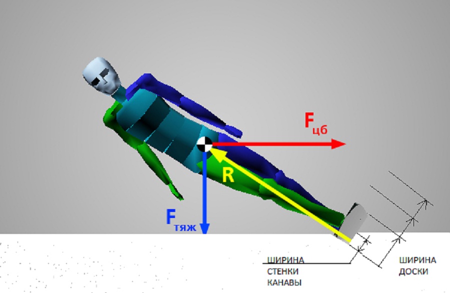 можно было взять др картинку - с ангуляцией и проч, имхо ничего не меняется - условие равновесия - результирующая сила не выходит за край опоры \ стенки канавы