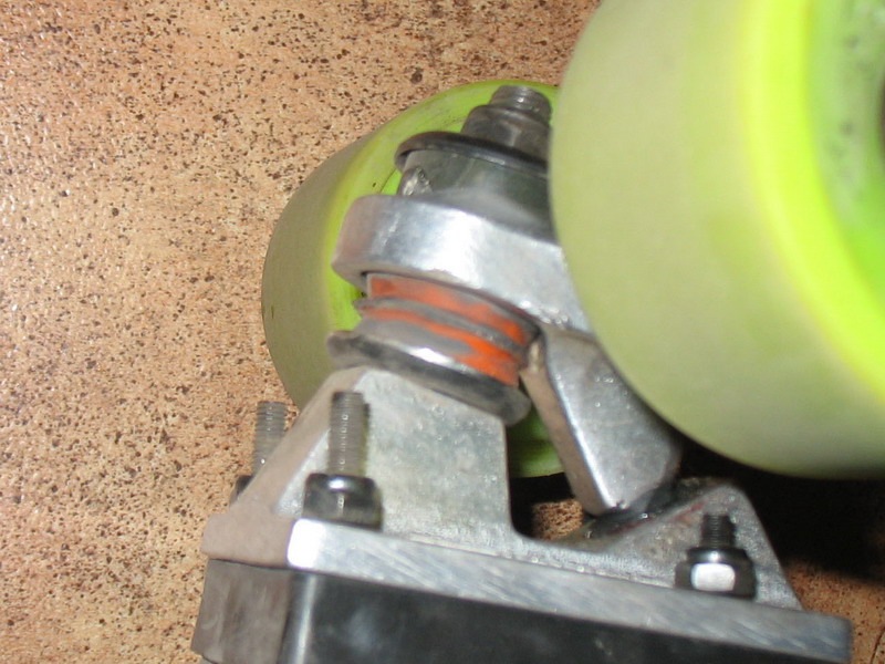 Скейт из широкой скейтербилдовской деки, модифицированных подвесок, спереди беннетт 100мм со сфериком, сзади - рандалл 100мм.