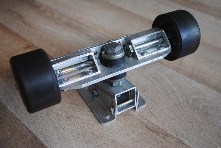 подвески стальные и тяжёлые, решил сделать облегчённую базу из алю-прифиля, да так оно и проще в домашних условиях, без фрезеровки, а с одной ножёвкой и дрелью. Имеется три положения в наклоне базы: среднее стандартное и два крайних(градусов по 15). Заодно решил заменить оси с 10мм на стандартные 8, благодаря удачному техническому решению получился ещё и модный оффсет.