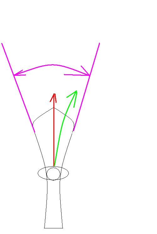 красным - прямолинейное, зелёным - траектория движения и условно туда направлена сила инерции в процессе движения по дуге, ну набор касательных, но тем не менее, часть уходит на центробежку, а часть - условно по дуге