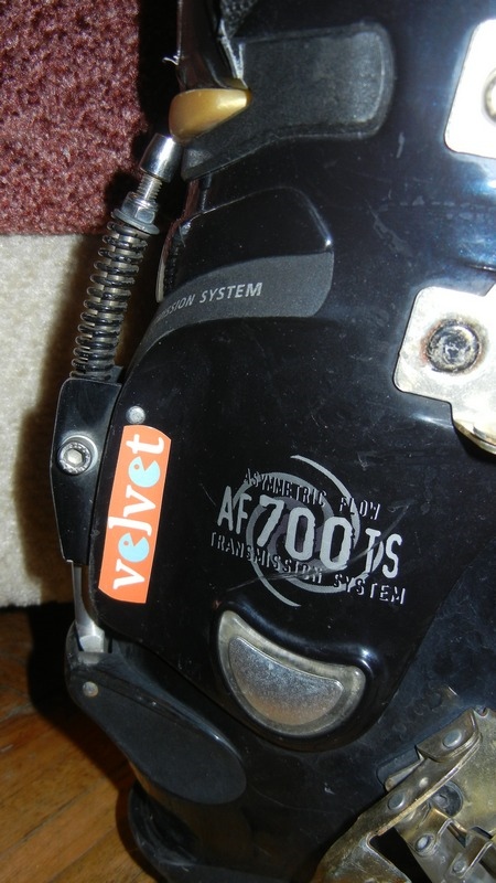 Установка оси более близкой к траектории хода голенища снимает напряжение с оси на излом, остается только на растяжение. Ещё проблема в том что нижняя деталь Г-формой которая не может поворачиваться должным образом следом за осью. Ещё может из-за того что длинная прямая верхняя деталь не позволяет оси и пружинам на ней наклоняться по отношению к голенищу и соответственно самой детали.