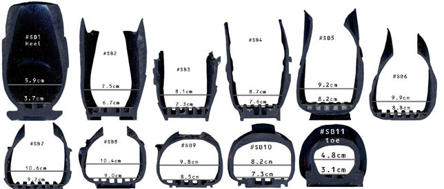 Вот смотрю на картинки SB и AF. По ним ширина в задней части всей отличается на 1-2 мм. НО! В реальности в первых нога разжимает пластик, а во вторых есть зазор около 3-4 мм. Но есть нюанс на фото... SB-серия ШИРЕ AF-серии :shok: Да стоит только посмотреть на них со стороны...