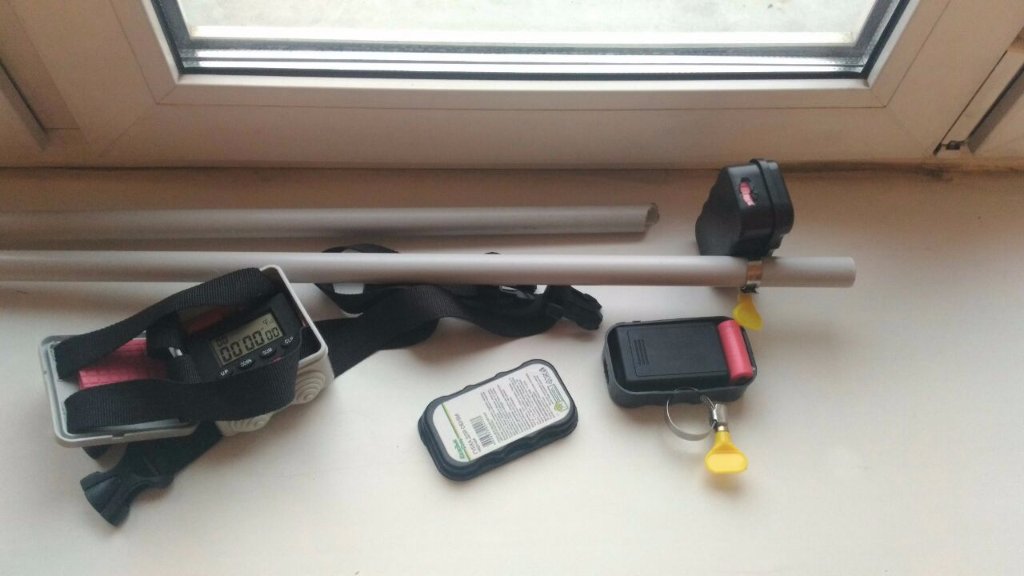 все как обычно - трубки с маячками ставятся в начале и конце трассы, а хрень с утяжками одевается на руку-ногу-еще куда-то