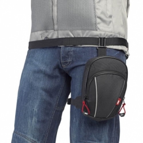 Купил именно такую сумку, как на фото, прикрепил на заднее бедро с внутренней стороны. Катался, падал, камера не страдает, бедро тоже, движений совершенно не стесняет.
