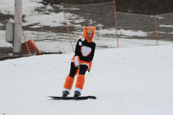 Лыжник кислый сидит, но на подъемнике с очаровательной Лисой ...и сейчас вниз помчится - настроение улучшится..лучше, увлеченнее и совершеннее