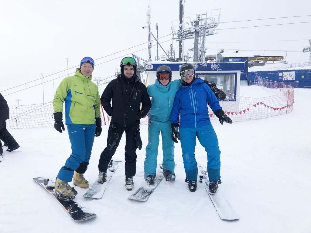 Сегодня мокрый фрирайд, но склон держится. Линия подъема на трешку блестит как каток. Китайцев не много но есть))