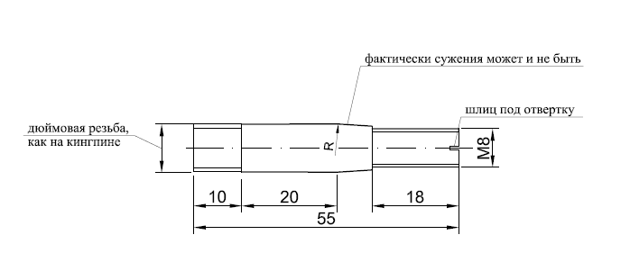 Там нарисован переход от оригинальной ширины радикаловского кингпина к резьбе Гоговского :)