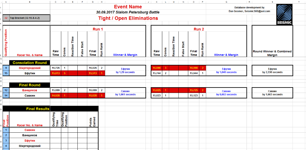 Хочу немного рассказать, как будут проходить финалы у мужчин. 4 сильнейших по результатам квалификации пойдут в финалы группы А, остальные 8 или, если наберется мужчин, 16 человек отправляются в финалы группы В. Но т.к. соревнования статуса Basic, то есть всего лишь одна мужская категория (Open), результаты будут заноситься одним списком, то есть тот , кто в финале группы А занял 1 место будет на 1 месте, а победитель финала группы В будет на 5 месте. Список 4 сильнейших на линейки и гибриде будет свой, исходя из результатов квалификации. Награждаться победители будут в 2 группах (группа А и В). Если в гибриде 1 место у Васи, а 2 у Саши, а в тайте наоборот, 1 место у Саши, а второе у Васи, то в общем зачете побеждает тот, кто выиграл гибрид.